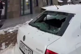 В Краснодаре автомобиль повредила упавшая с крыши многоэтажного дома сосулька.