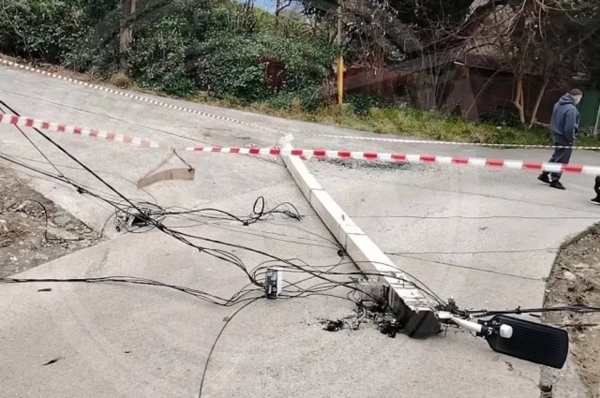 Бетонный столб с проводами упал на проезжую часть в селе под Сочи
