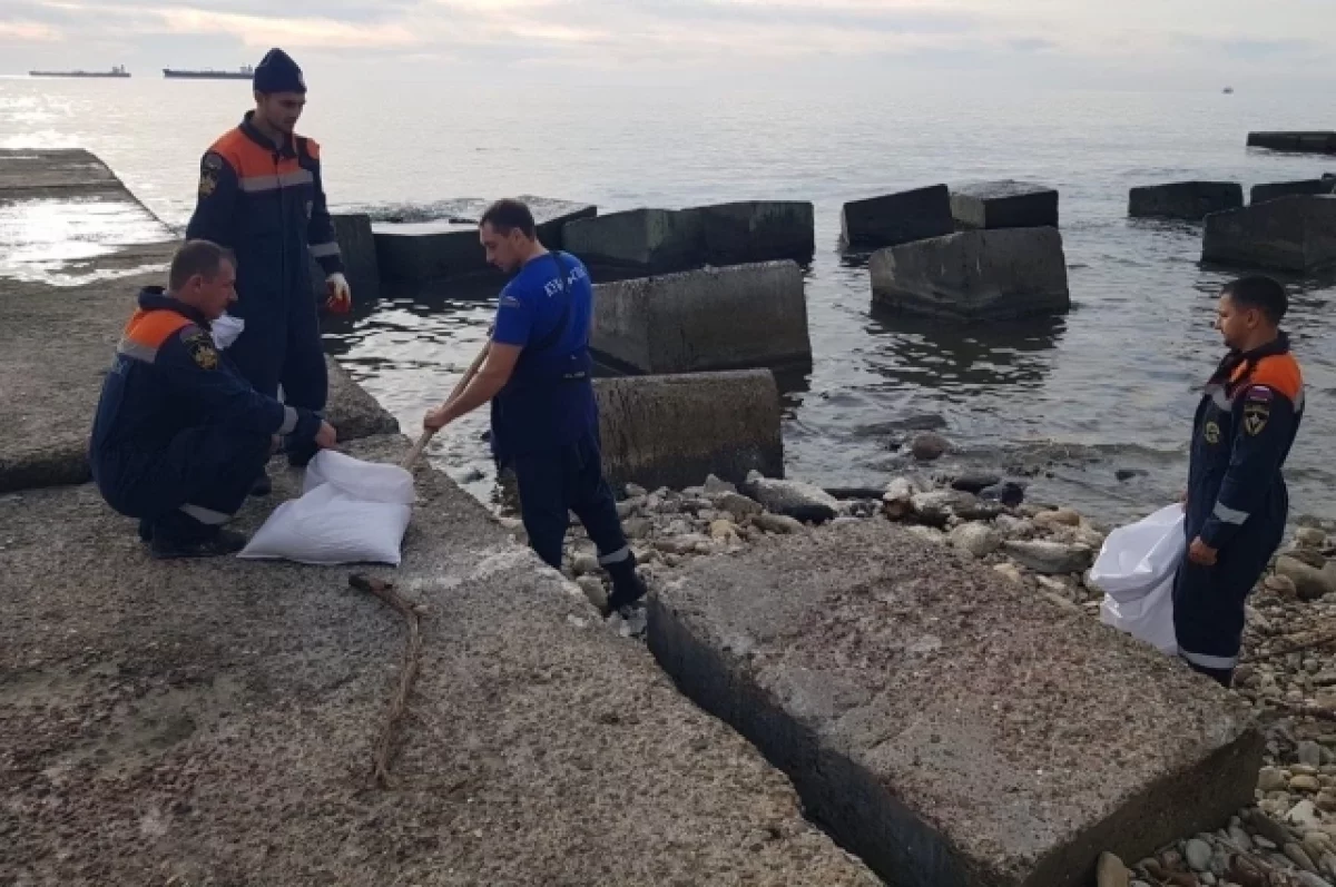 В Туапсе очистили 300 метров береговой линии от мазута.