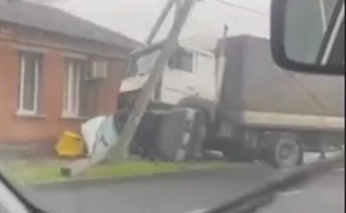 В Краснодаре фура вылетела на тротуар и смяла легковушку.