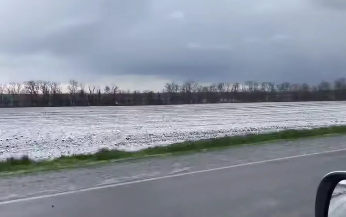 Поля в станице Староминской усыпаны градом. кадр видео