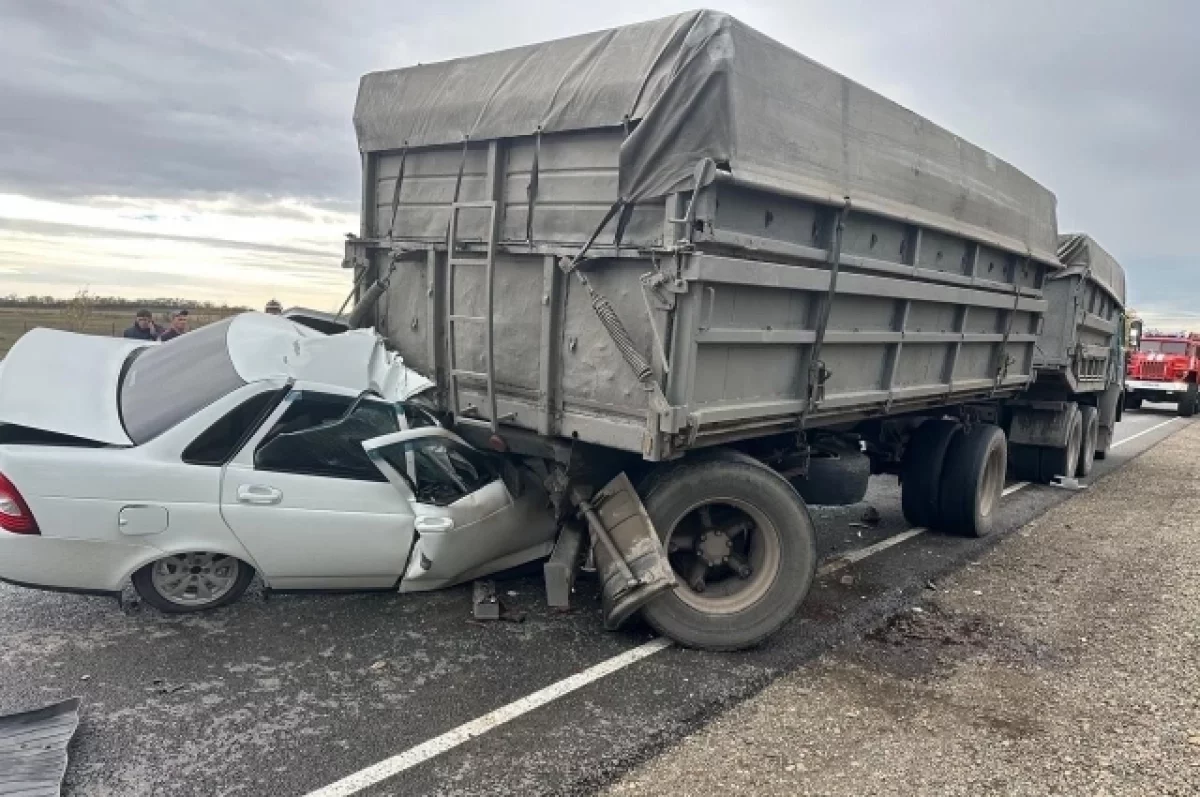 Авария произошла при подъезде к аулу Урупский Успенского района. 74-летний водитель «Лады Приоры» не выдержал безопасную дистанцию и столкнулся с впередиидущим грузовиком. Отечественно авто буквально подмяло под колеса Камаза.