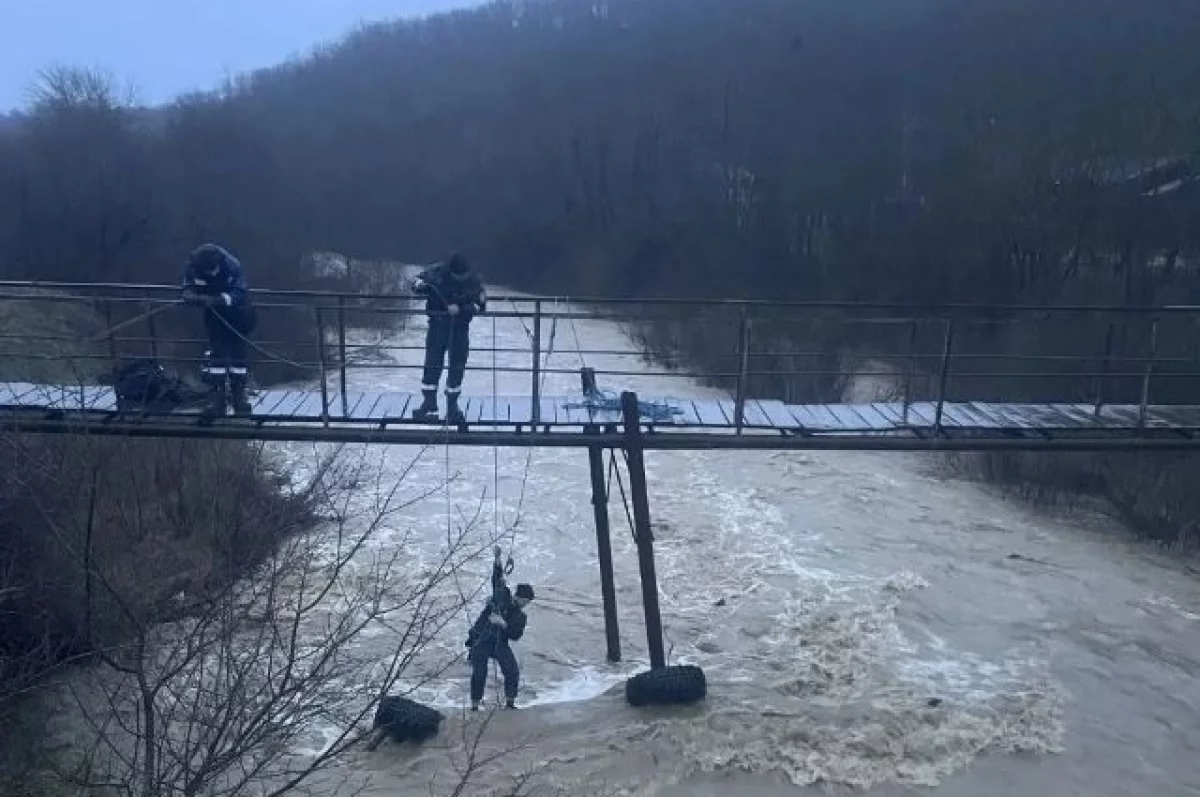 На место происшествия прибыли спасатели, бригада медиков, сотрудники полиции и администрация. Однако из-за сложных погодных условий – сильного паводкового течения – эвакуировать автомобиль из воды пока не удается.