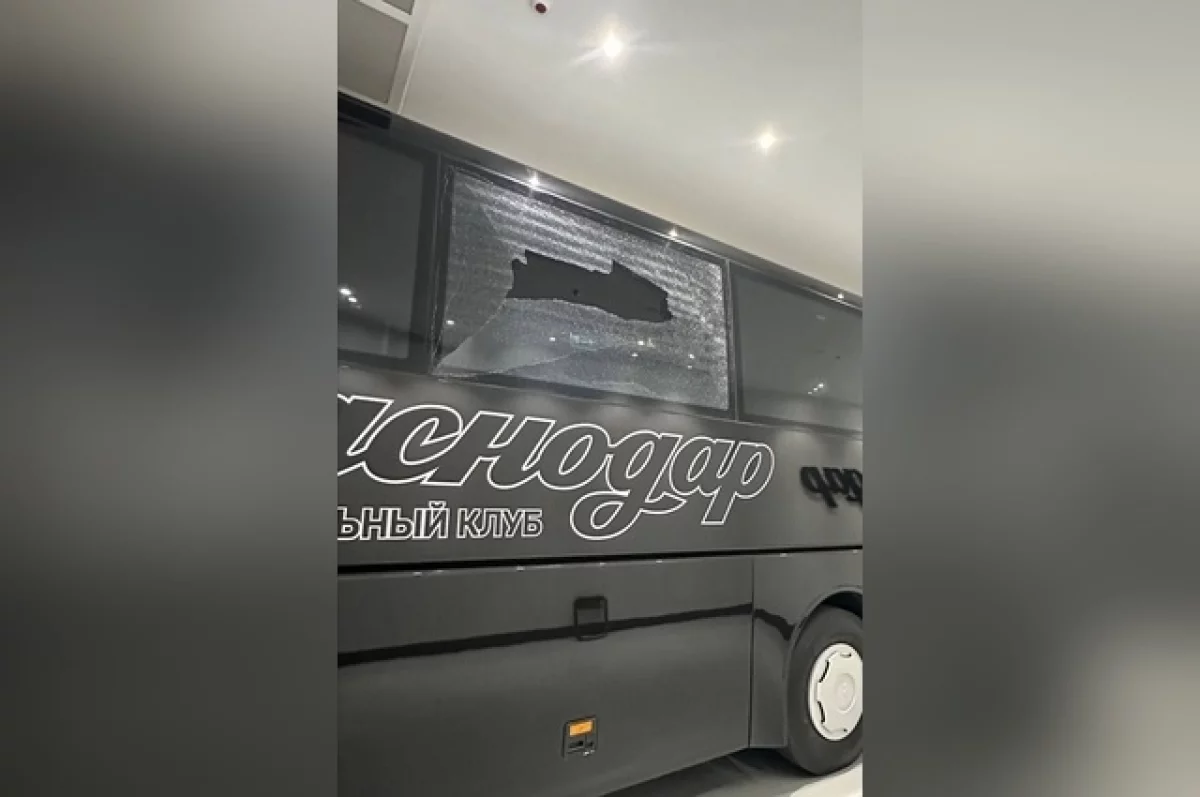 Этим же вечером в полицию Краснодара поступило сообщение о повреждении автобуса спортивной команды.