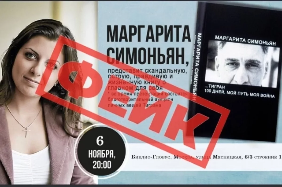 Главный редактор телеканала RT Маргарита Симоньян опровергла информацию о презентации своей книги о режиссере Тигране Кеосаяне. Об этом журналистка рассказала в своем Telegram-канале.