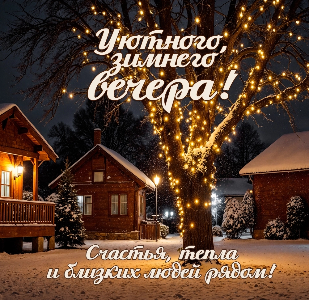 Когда кончается короткий, но не всегда легкий зимний день, хочется пожелать знакомым, родным и близким хорошего вечера. Простой способ сделать это — прислать человеку теплую открытку.