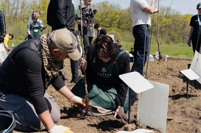 Будущие жители курортного поселка, партнеры и сотрудники ГК ТОЧНО вместе высадили именные лозы «Саперави» и яблони «Лигол». Через несколько лет каждый участник мероприятия получит подарок — бутылку вина и сидра из первого урожая.