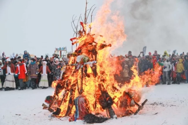 Воскресенье — «Проводы» (Прощеное воскресенье). Просят прощения у близких, ходят в баню, сжигают чучело Масленицы. Пепел рассеивают по полям — на урожай.