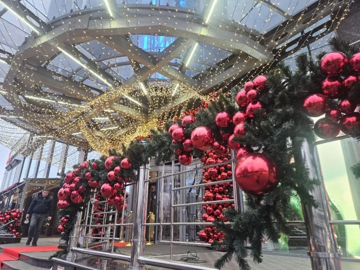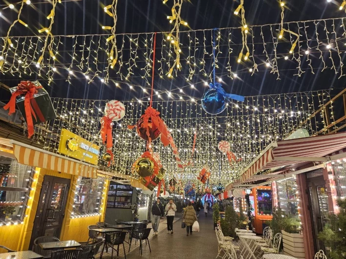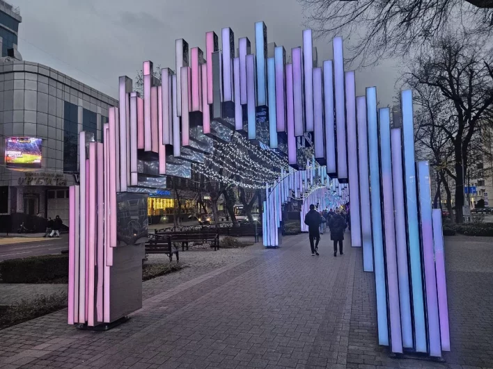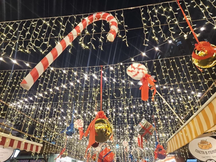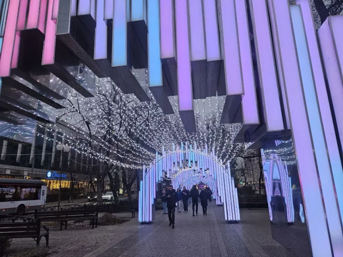 Украшенная к Новому году улица Красная в Краснодаре