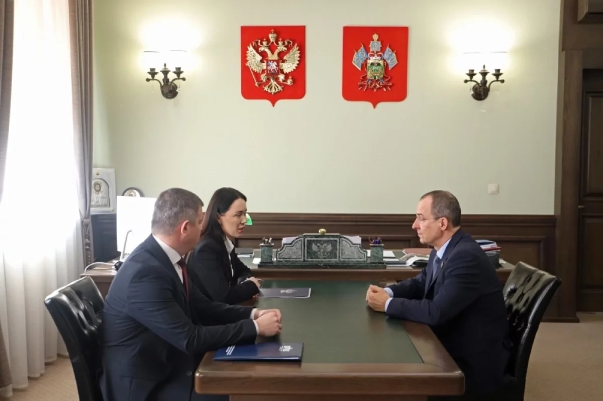 Председатель Законодательного Собрания Юрий Бурлачко провел рабочую встречу с руководителем департамента развития бизнеса и внешнеэкономической деятельности Краснодарского края Юлией Приходько. В работе принял участие первый заместитель председателя комитета ЗСК по финансово-бюджетной, налоговой, экономической политике, предпринимательству и финансовым рынкам Алексей Титов.