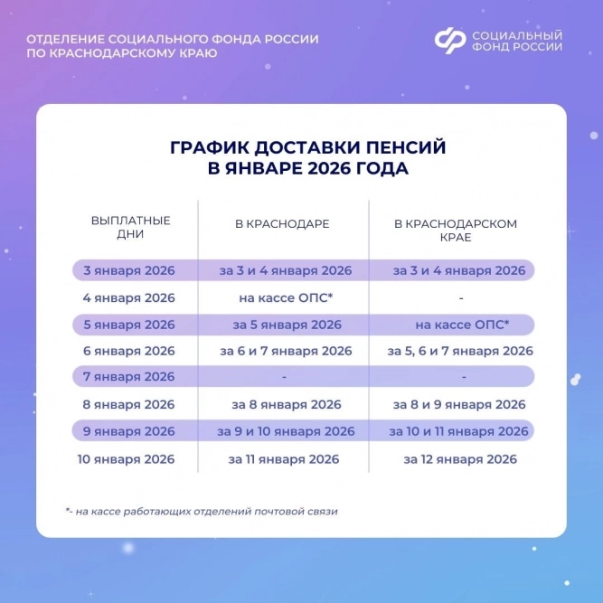 Опубликован измененный график доставки пенсий на Кубани в январе. Об этом проинформировали в телеграм-канале Отделения Социального фонда РФ по Краснодарскому краю.