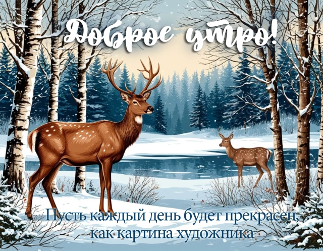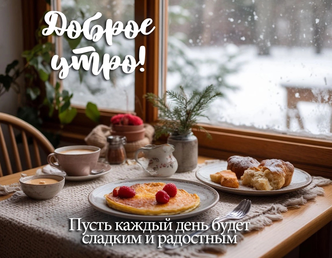 Доброе зимнее утро начинается именно так — с теплых улыбок, ароматного кофе и хорошего настроения. Пусть эти зимние дни подарят вам уют, радость и яркие впечатления. А наши открытки станут отличным началом вашего чудесного утра! Открывайте подборку, заряжайтесь позитивом вместе с нами, скачивайте открытки и дарите друзьям и близким.