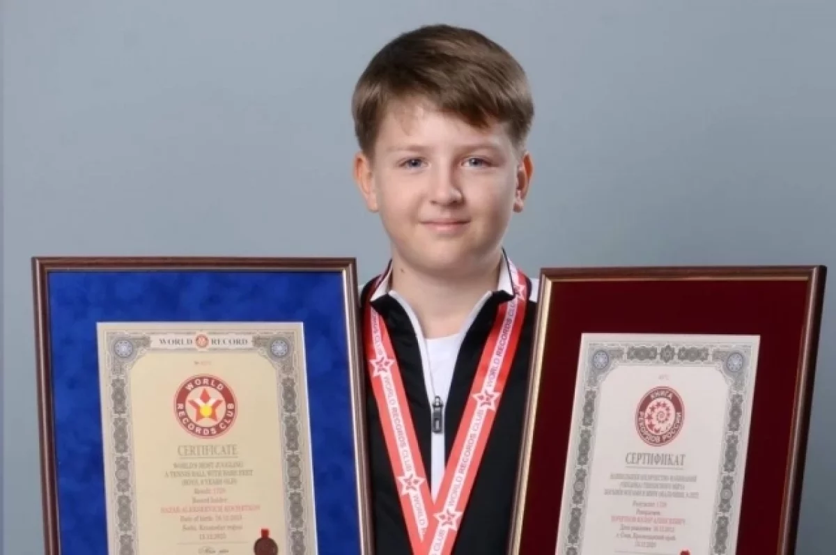 Сочинец Назар Кочетков босыми гогами набил теннисный мяч 1728 раз и установил мировой рекорд среди мальчиков девяти лет. Об этом 7 апреля сообщили в социальных сетях Книги рекордов России.