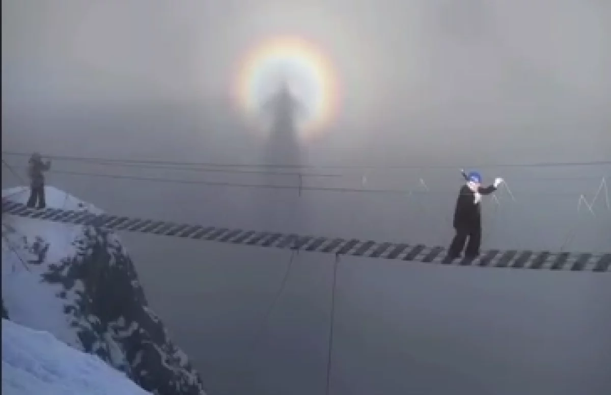 Это видение формируется при особом сочетании метеофакторов: при ярком, но низко стоящем солнце, когда тень наблюдателя или группы людей проецируется на плотный слой облачности или тумана, расположенный за ними.
