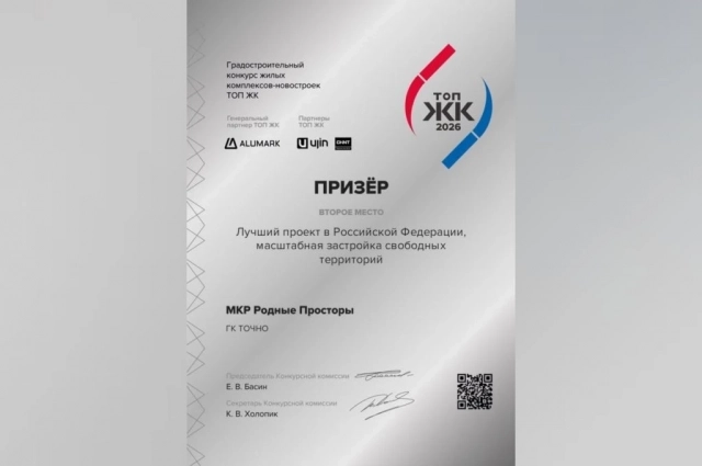 Микрорайон «Родные Просторы» от девелопера ТОЧНО (владелец – бизнесмен Николай Амосов) взял «серебро» престижной премии ТОП ЖК 2026. Эксперты признали проект одним из лучших в России в номинации «масштабная застройка свободных территорий».
