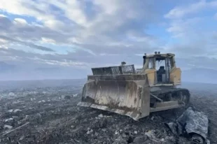 В настоящее время на горящем полигоне в Новороссийске работают 10 единиц техники: бульдозеры, экскаваторы и пожарные машины.