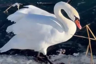 Спасатели освободили лебедя, вмерзшего в лед на реке в Анапе